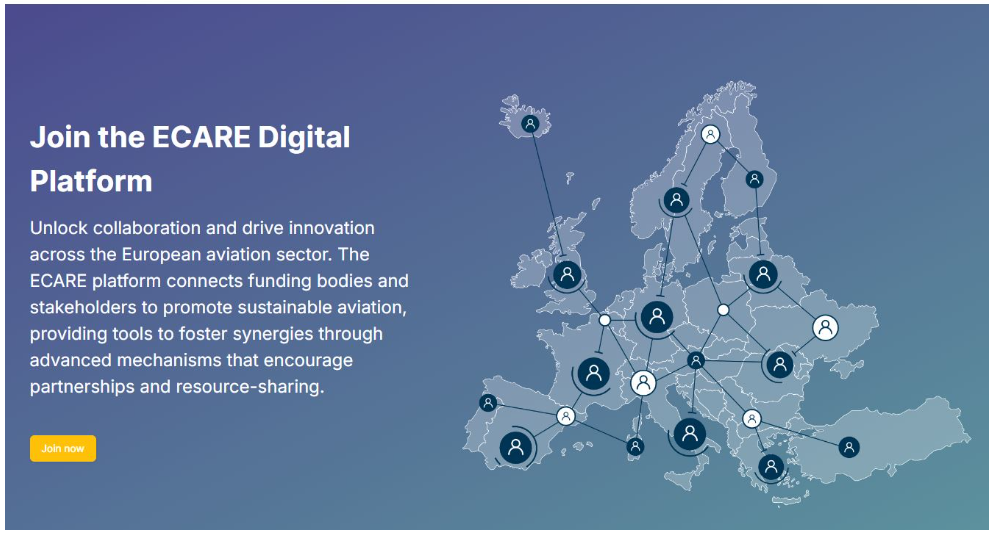 ECARE, Avrupa Temiz Havacılık Ortaklığı (Clean Aviaon JU) tarafından fonlanan bir projedir. Proje kapsamında geliştirilen ECARE Dijital Platformu (EDP), havacılıkta kamu fonlamasını artırmayı amaçlamaktadır. Platform paydaşlara, iş birliği ve araştırma için bir araç olmanın yanı sıra, güçlü sinerjiler yaratmak için fonlama fırsatlarını belirleme imkanı sağlamaktadır.