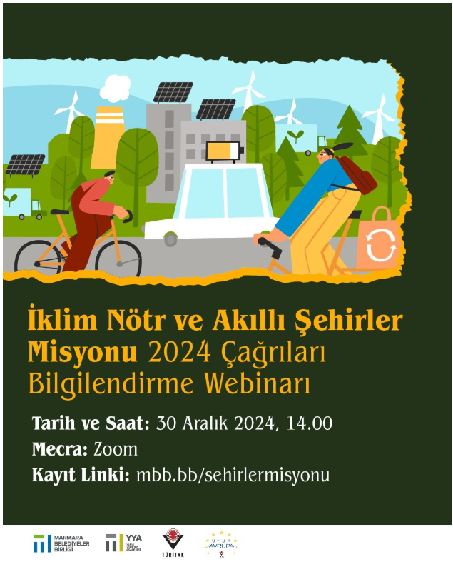 Marmara Belediyeler Birliği ve TÜBİTAK iş birliğiyle, ‘İklim Nötr ve Akıllı Şehirler’ misyonu kapsamında açılan dört çağrıya yönelik bilgilendirme webinarı düzenlenecektir. Başvuru süreçlerine ilişkin detayların aktarılacağı webinar, 30 Aralık 2025 tarihinde saat 14.00-15.00 arasında çevrimiçi olarak gerçekleştirilecektir.