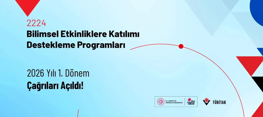 2224-A Yurt Dışı Bilimsel Etkinliklere Katılımı Destekleme Programı ve 2224-B Yurt İçi Bilimsel Etkinliklere Katılımı Destekleme Programı 2026 yılı 1. dönem çağrılarına başvurular açılmış olup, 24 Şubat 2026 tarihine kadar devam edecektir.